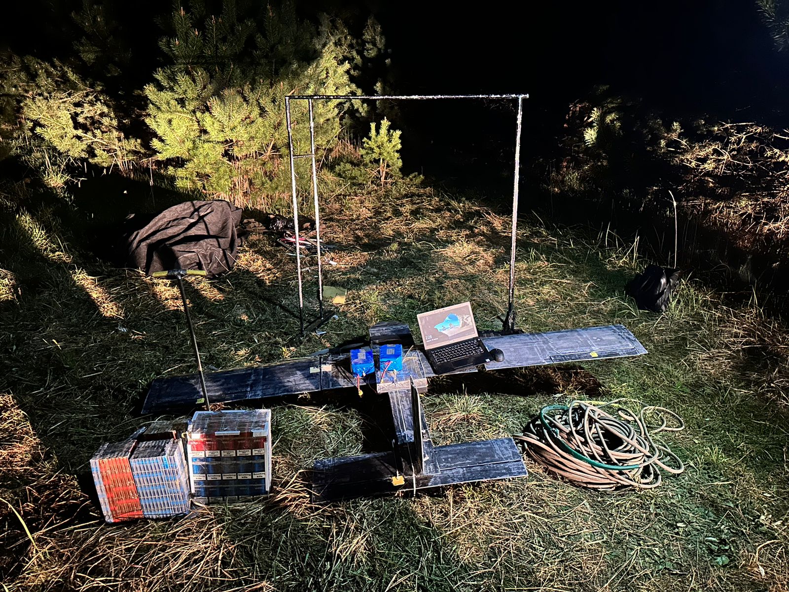 На місці події охоронці кордону знайшли безпілотник, комплектуючі для його запуску, 360 пачок тютюнових виробів та легковий автомобіль.