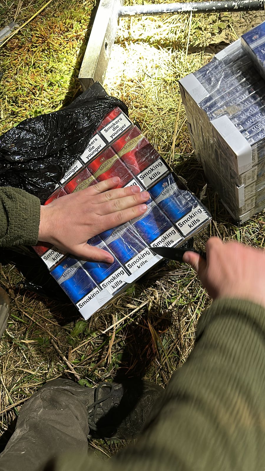 У ході реалізації наявної оперативної інформації щодо можливої протиправної діяльності у Ковельському районі, прикордонники розпочали перевірочні заходи на вказаному напрямку. В результаті пошуку в лісовому масиві охоронці кордону виявили трьох осіб, які саме збиралися за допомогою безпілотного літального апарату типу «Літак» перемістити сигарети до Польщі.