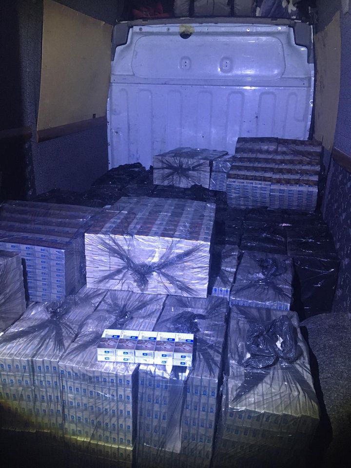 Під час огляду транспортного засобу правоохоронці виявили 50 пакунків з тютюновими виробами. Загалом чоловік віз в мікроавтобусі 25 тисяч пачок цигарок без марок акцизного збору.