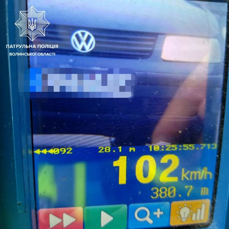 зафіксували перевищення швидкості автомобілем VolkswagenPassat.