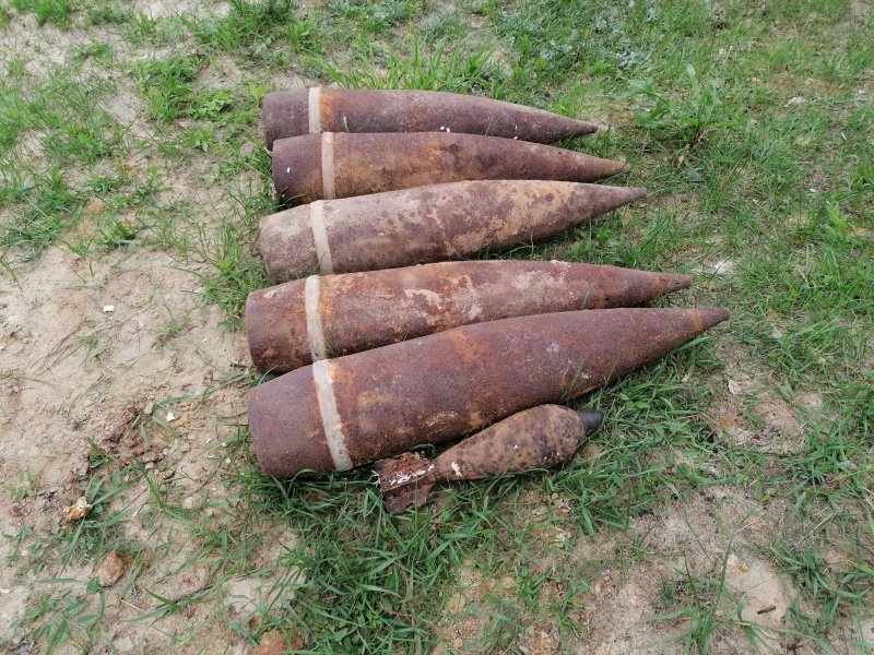 снарядів калібру 152 мм та мінометну міну калібру 82 мм; поблизу водойми у селі