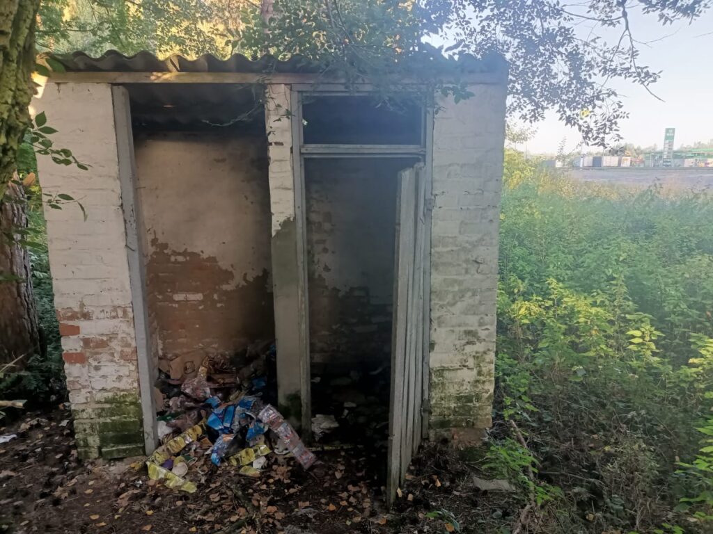 Чергова точка безладу знаходиться на Цуманському перехресті Луцького району в напрямку міста Рівного. Звідси відстань до сусіднього обласного центру фактично така сама, як і до міста Луцька. Зрозуміло, що значна частина місцевого населення активно використовує цей маршрут для пересування. Так само очевидно, що під час очікування на автобус людям інколи необхідно скористатися послугами туалету. І він тут є. Точніше, був, бо наразі конструкція з вибитими дверима і загадженим внутрішнім простором може називатися як завгодно, але тільки не вбиральнею…