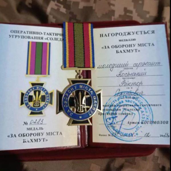 Косінський з Торчина нагороджений медаллю «За оборону міста Бахмут». Свого часу