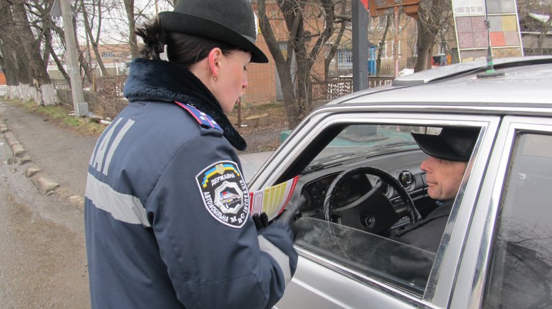 профілактичну бесіду проводить водіям фахівець управління ДАІ Інга Коваль.