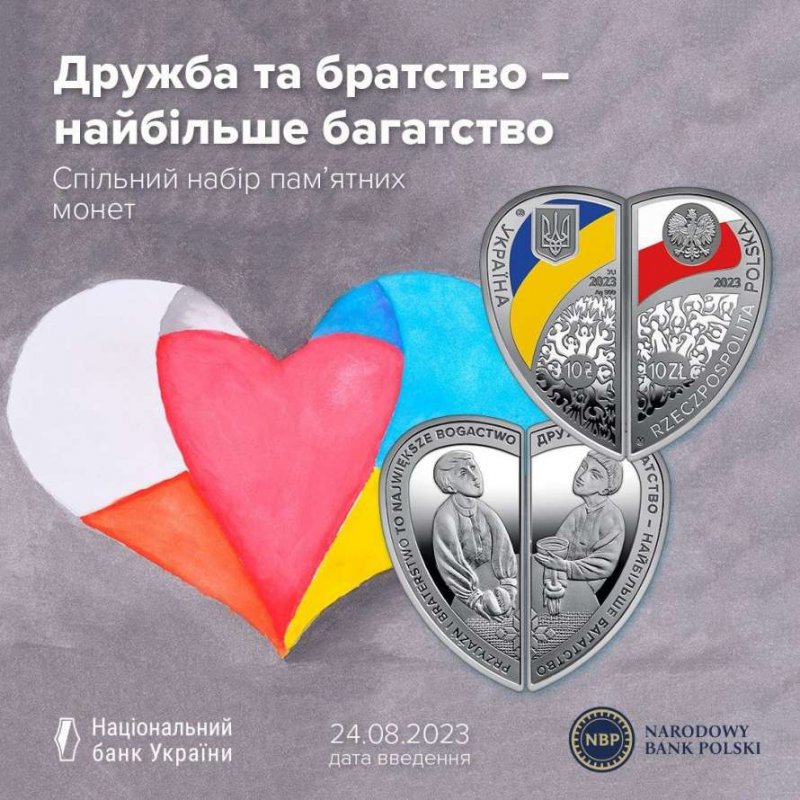 фігуру у формі серця. Їх номінал – 10 гривень та 10 злотих.