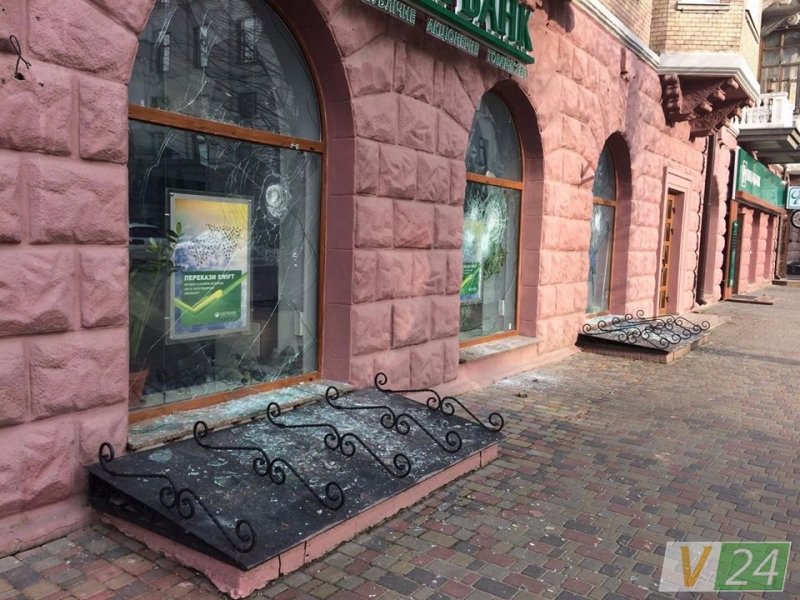 аналогічне повідомлення про пошкодження чотирьох вікон у приміщенні банку на
