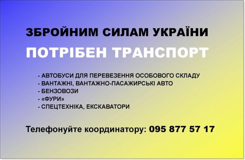 великогабаритних авто: Збройні сили України потребують транспортних засобів!