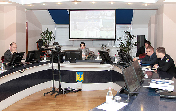 На фото: під час відеоседекторної наради під керівництвом глави нацполіції Хатії Деканоідзе.