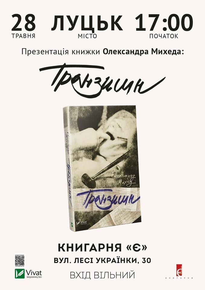 Книгарня «Є» та видавництво «Vivat» запрошують на презентацію книжки Олександра Михеда «Транзишн» за участю автора. Захід відбудеться 28 травня. Початок – о 17.00.