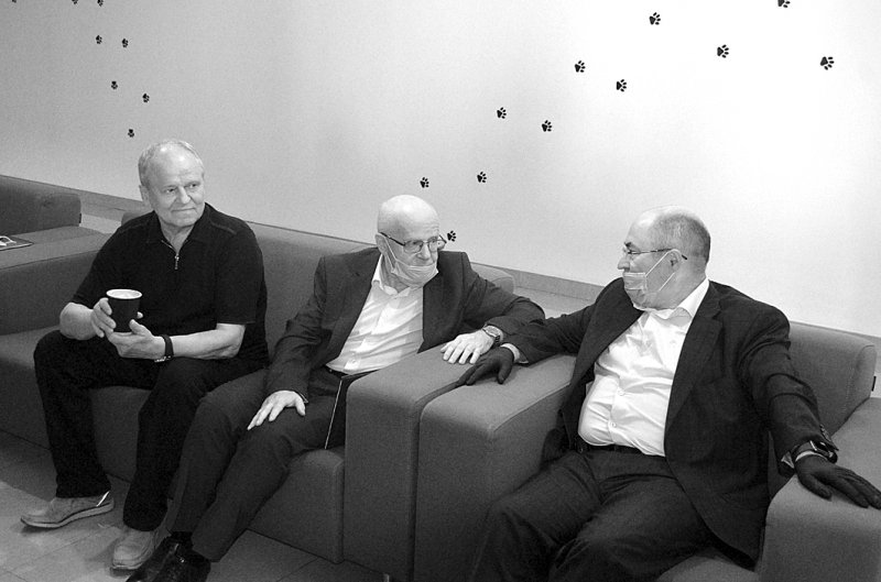 На фото Романа УСТИМЧУКА, пресслужб Президента України та ЛДБК: голова Наглядової ради ПАТ «Луцьксантехмонтаж №536» Віктор Чорнуха, Руслан Вайман (у центрі) та директор СГПП «Романів» Луцького р-ну Віталій Заремба спілкуються перед зустріччю з Президентом України; на засіданні, де Володимир Зеленський схвалив ідею реанімації Програми «Доступне житло»; нові багатоповерхівки, які будує ПрАТ «Луцький домобудівельний комбінат», могли б стати житлом для захисників України та вимушених переселенців…