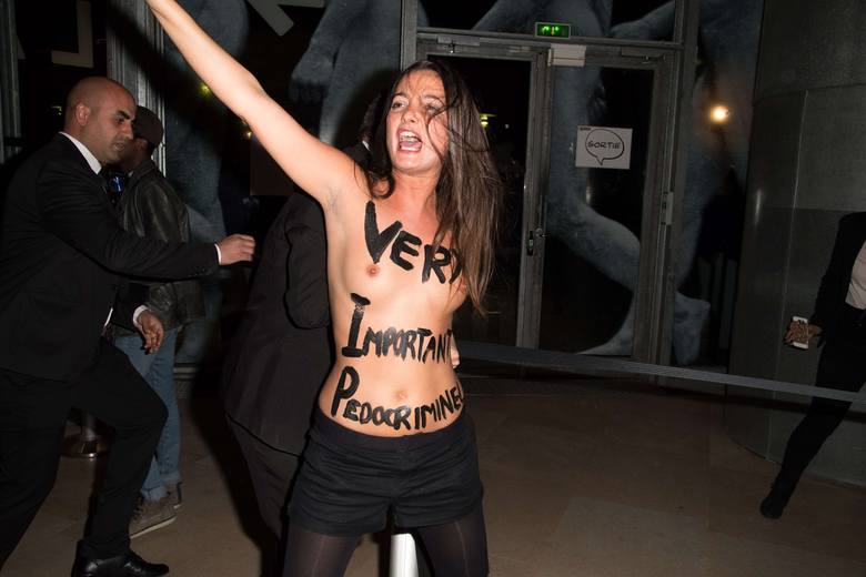 На фото Джефрі ван дер НАССЕЛЬТА (Агенція «AFP»):  активістка «Femen» протестує в м. Парижі проти