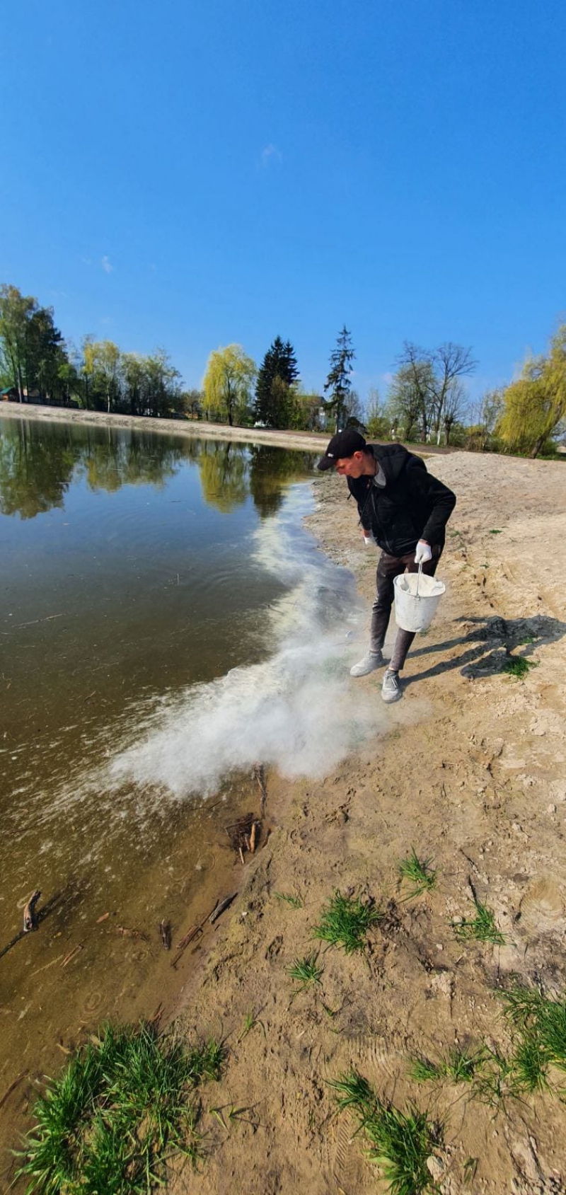здійснили перший етап вапнування води, витративши близько 60 кг вапна.