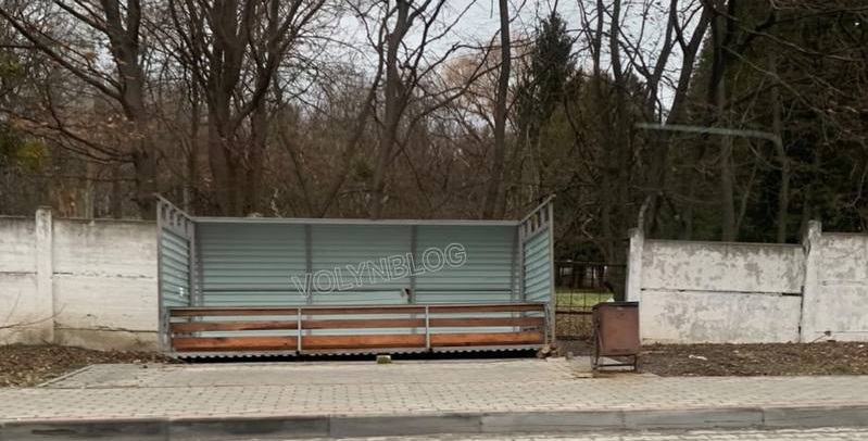 споруда, встановлена на зупинці громадського транспорту поблизу обласної психіатричної