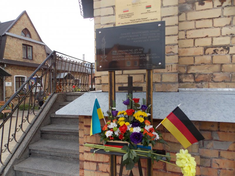 На фото автора: церемонія відкриття меморіальної дошки в пам’ять 100-річчя депортації волинських німців у 1915-1916 рр.