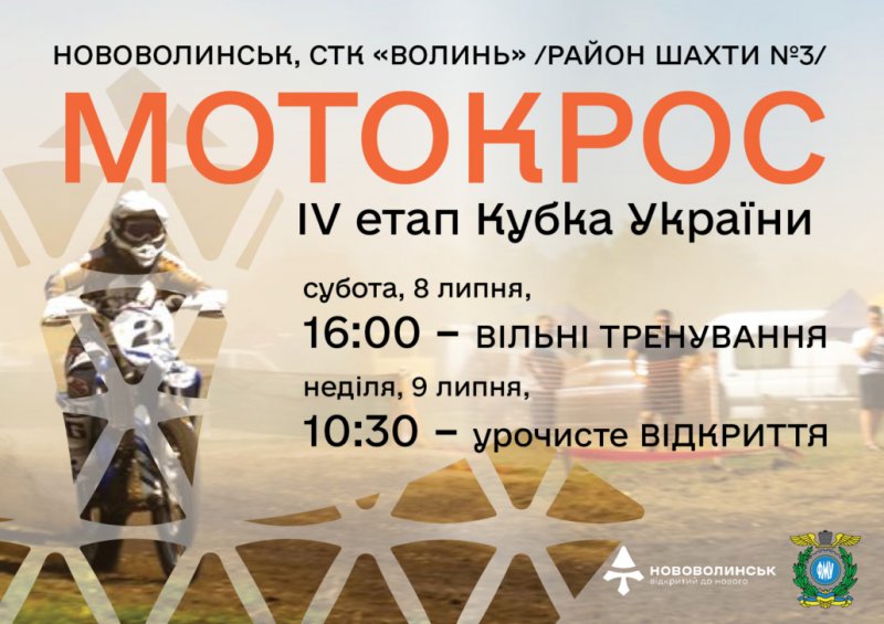 У найближчі вихідні, 8-9 липня, у Нововолинську відбудеться IV етап Кубка України з мотокросу. До участі у змаганнях зголосилися понад сто учасників з різних міст.