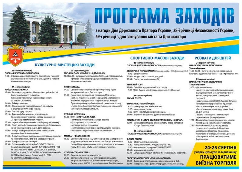 З 23 по 25 серпня у Нововолинську відбудеться ряд заходів