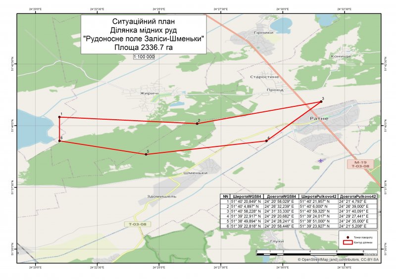 на розробку родовища мідних руд «Заліси-Шменьки» у Волинській області. Водночас