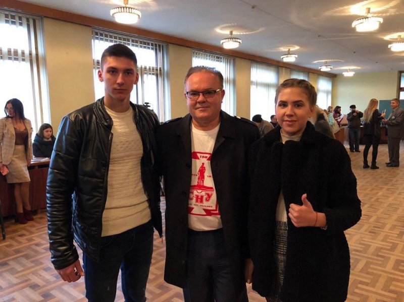 ректора СНУ, екс-ректор Ігор Коцан під час голосування зі студентами Андрієм