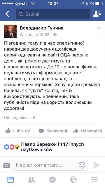 використовують. Впевнений, така публічність піде на користь волинським дорогам!»