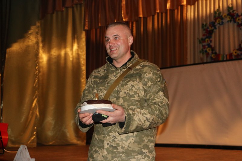на якому задмухав свічечки. Смаколиком він пригостив усіх військовослужбовців.
