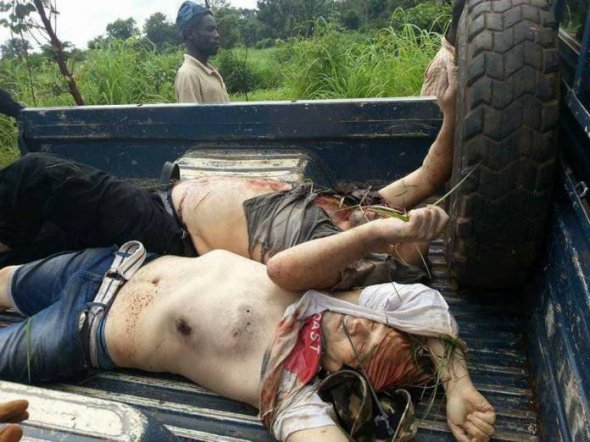 фото газети «Рalmares Сentra Frique»: тіла двох убитих російських репортерів.