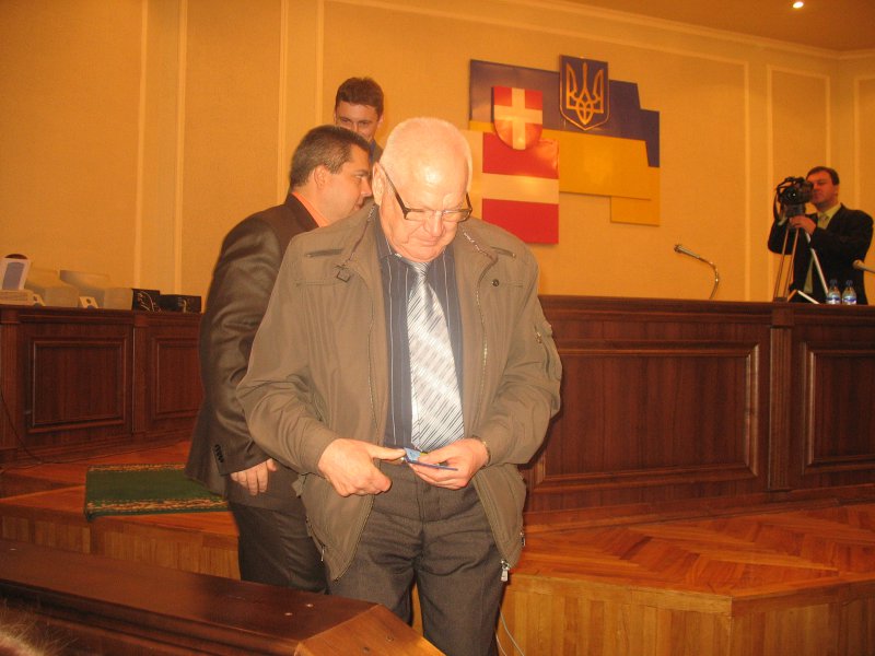 На фото автора: 2010 р., Петро Бущик отримує посвідчення депутата облради.