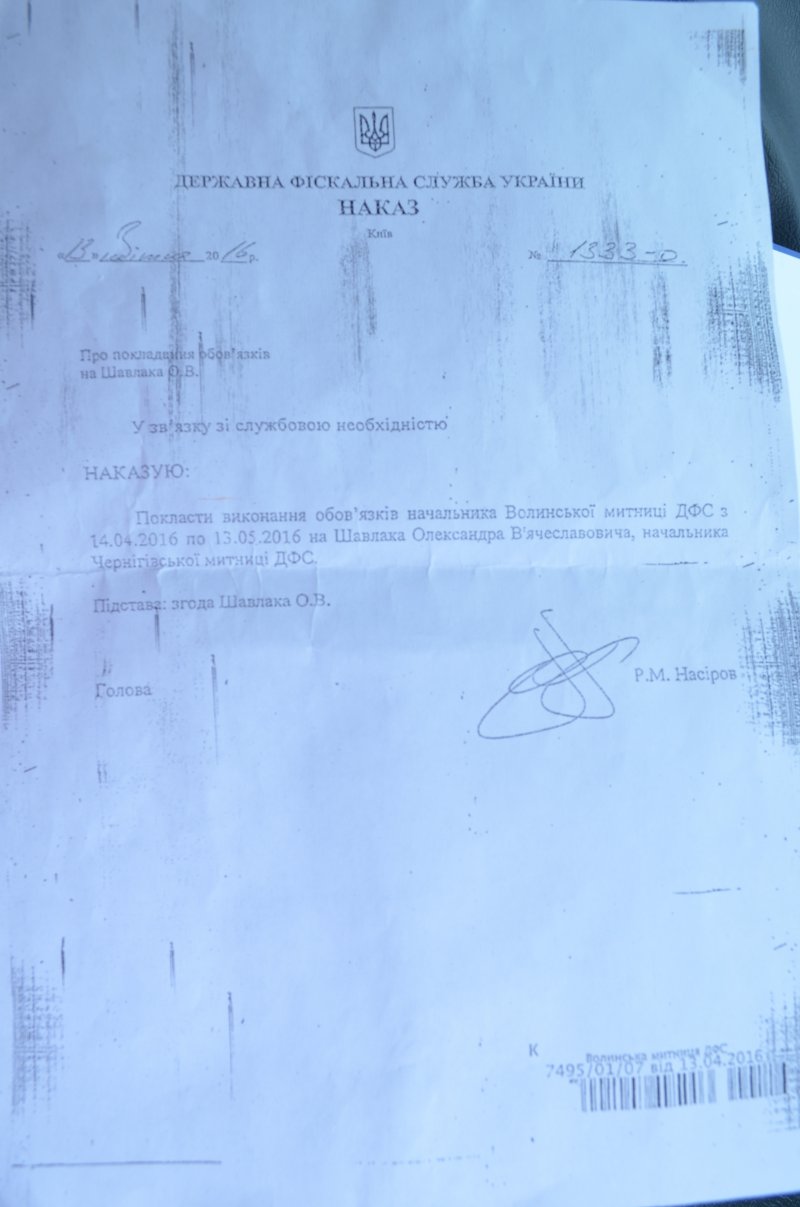 Дивина та й годі: голова ДФС Роман Насіров підписав наказ про продовження повноважень Олександра Шавлака на посаді в. о. начальника Волинської митниці 13 квітня. Номер наказу починається з цифри «13». І термін повноважень закінчився також 13-го!