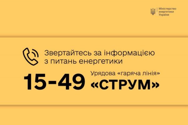 У суботу, 20 липня, в Україні запрацювала урядова телефонна лінія «Струм». За номером 15-49 українці можуть цілодобово та безплатно отримати консультації з енергетичних питань.