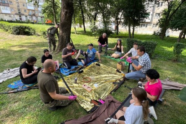 19 червня інструктори Володимир-Волинського районного центру підготовки територіальної оборони провели у Володимирі чергове заняття за програмою підготовки населення до національного спротиву, яке цього разу відбулось на відкритому повітрі у центральній частині міста.