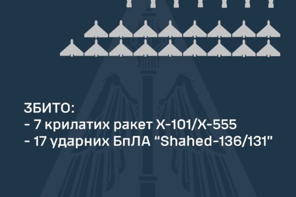 Під час сьогоднішньої нічної атаки росіяни запустили 31 засіб повітряного нападу: 14 ракет й 17 «шахедів».