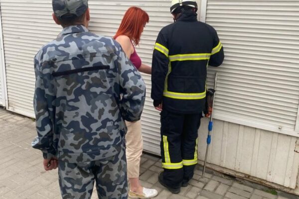 На вулиці Карпенка-Карого в Луцьку на ринку між торгівельними контейнерам застрягло кошення та не могло самостійно вибратися.