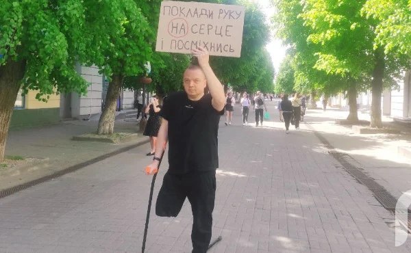 Активіст має в арсеналі два плакати з написами: «Не відвертай обличчя, я не чудовисько», «Поклади руку на серце і посміхнись». Саме їх він тримає в руці, коли стоїть без милиць на центральних вулицях Луцька. Акція знайшла відгуки в місцевих жителів, які виконують прості рухи, до яких закликає Євген. Люди часто підходять до нього обійнятися і висловити слова підтримки.