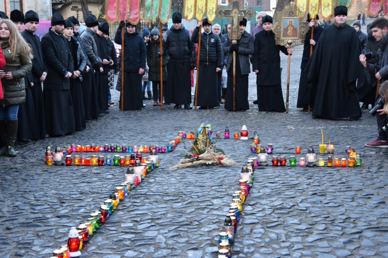 Замковій площі свічечками та лампадками, скорботними композиціями із колосків