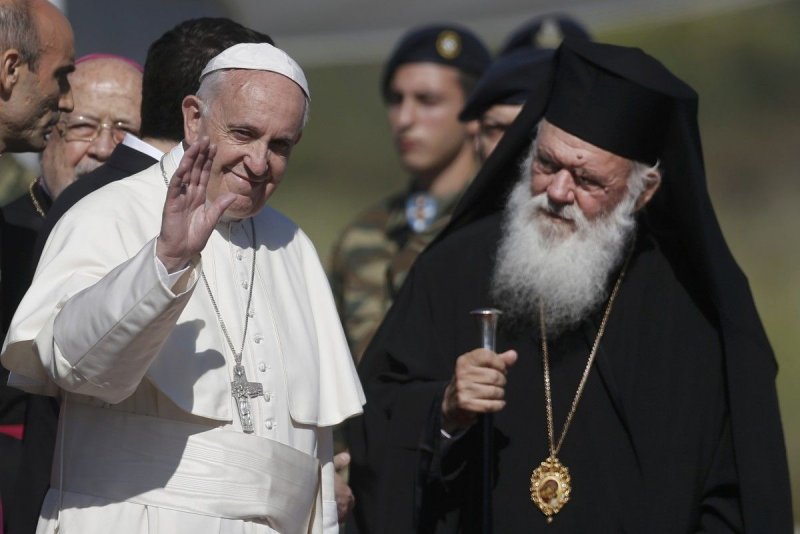 Франциск і архієпископ Ієронім Другий на острові Лесбос у Греції.