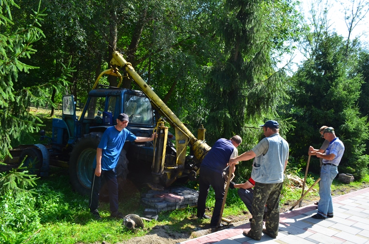 допомагає у міру своїх можливостей. Хтось кладе бруківку на алеях, встановлює
