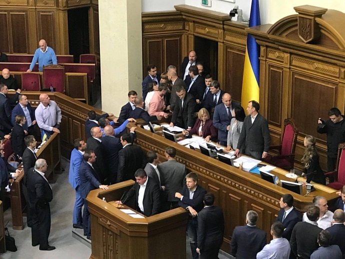 «Зупиніться! Я прошу голів фракцій пройти у мій кабінет», – цитує його «Українська