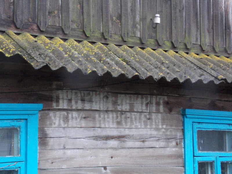 На фото автора: на хатах в Угриничах досі збереглися комуністичні лозунги; сільська церква, що постала на руїнах знищеного у війну храму; 90-літня Марія Комар.