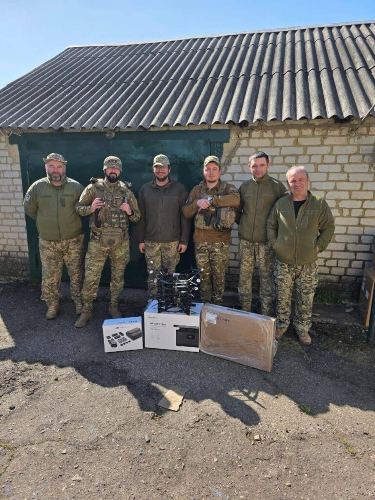 Зокрема, для 100 ОМБр Суопутних військ ЗСУ – комплекс РЕБ та додаткову акумуляторну батарею підвищеної ємності до нього, 3 квадрокоптери Dji Mavic 3 Fly More Combo;