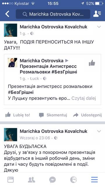 своїй сторінці на Фейсбуці Марічка Островська повідомляє, що презентація