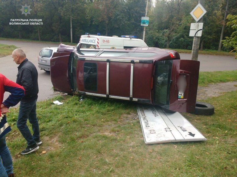 не впорався з керуванням, перекинувся та пошкодив дорожній знак.