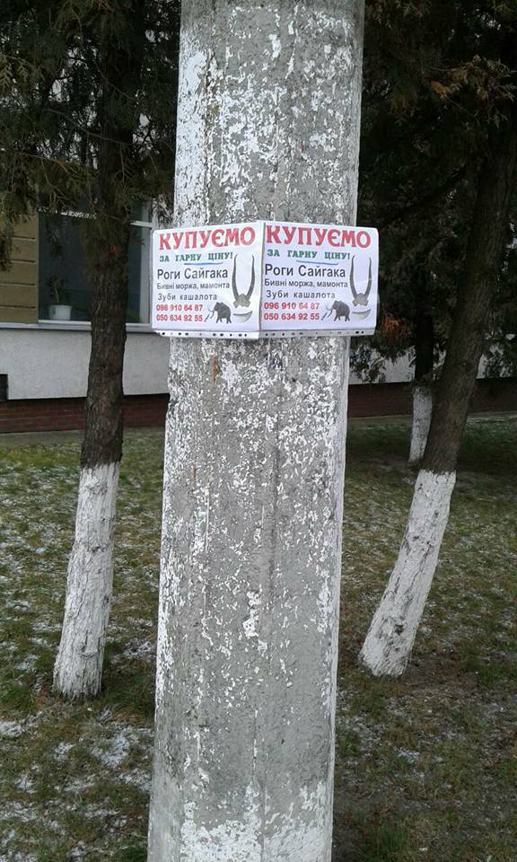 банерами з незвичною пропозицією. Люди готові купити роги сайгака, бивні моржа