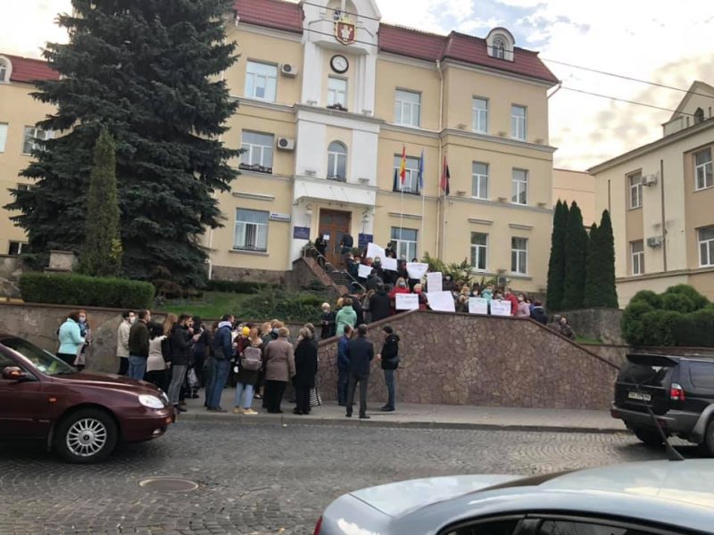 Сьогодні, 15 жовтня, працівники Луцького пологового будинку та громадські активісти вийшли під стіни міськради на акцію протесту проти облаштування інфекційного шпиталю, де мають лікуватися хворі на коронавірус.