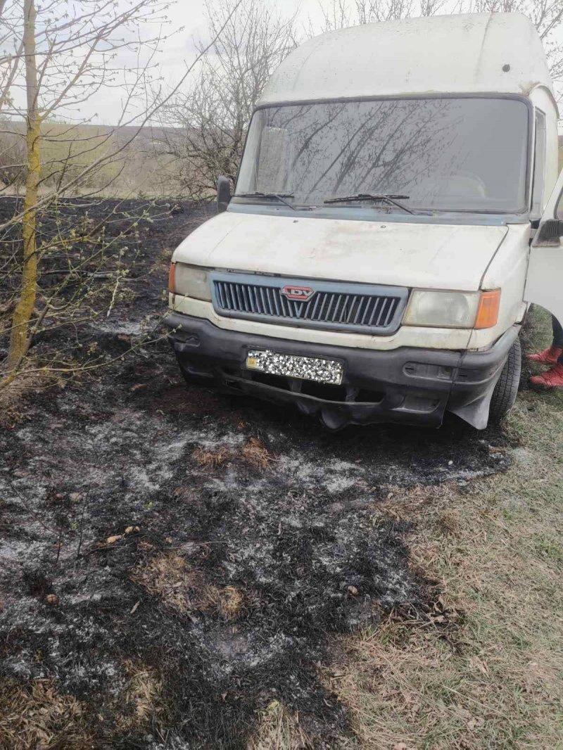 Полум’я на відкритій ділянці перекинулося на припаркований неподалік вантажний фургон, пошкодивши передні колеса, бампер і кузов. Горіння загасили очевидці вогнегасниками і підручними засобами.