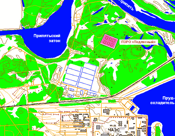 Окрім цього, буквально за 1 км. від мертвого міста енергетиків – Прип’яті – знаходиться ще один напівсекретний об’єкт – так званий Пункт захоронення радіоактивних відходів (ПЗРВ) «Підлісний», який у 1986 р. було споруджено з метою надійного поховання та ізоляції від навколишнього середовища високоактивних відходів, які утворювалися при ліквідації наслідків аварії на 4-ому енергоблоці АЕС. Із самісінького початку місце для розташування цього могильника вибрали невдало: він знаходиться практично на березі водоймища (Прип’ятський затон) і всього за 1 км від річки Прип’ять, що може привести до екологічних проблем у разі втрати герметичності контейнерів та бетонних ємностей (модулів) з радіоактивними відходами. У «Підлісному» було передбачено 8 модулів, які розміщувалися на монолітній, цілісній фундаментній плиті. У модулі завантажувалися радіоактивні відходи у контейнерах, бочках, а також просто насипом. За період експлуатації ПЗРВ в нього було завантажено тільки 2 модулі (на половину їх проектної ємності). Потужність дози гамма-випромінювання похованих у них ядерних відходів становить від 50 рентгенів на годинудо 250-ти (допустима норма радіації – 25-30 мікрорентгенів на годину!).