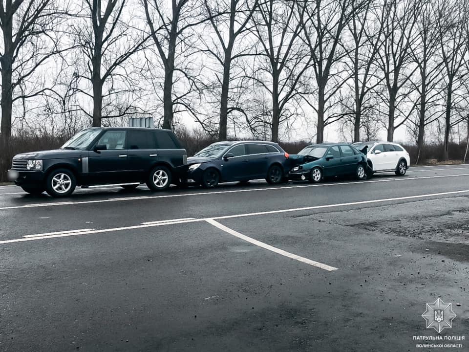 Учора на автодорозі М-19 на вʼїзді в місто Ковель сталася дорожня автопригода за участі 4-х автомобілів.