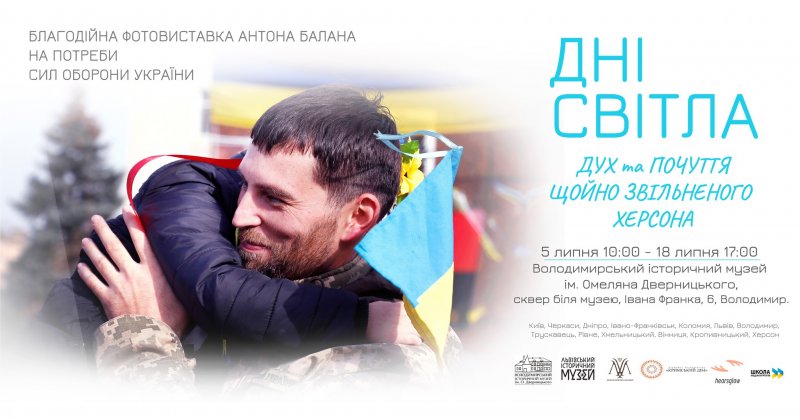 З 6 по 18 липня запрошують усіх гостей та жителів міста у сквер біля історичного музею імені Омеляна Дверницького. Благодійна фотовиставка під назвою “Дні світла: Дух та емоції щойно звільненого Херсона” експонуватиметься за сприятливих погодних умов під відкритим небом, – інформують у міській раді.