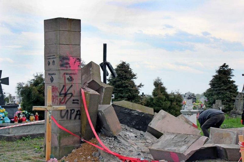 варварське знищення монумента полеглим повстанцям біля м. Перемишль.
