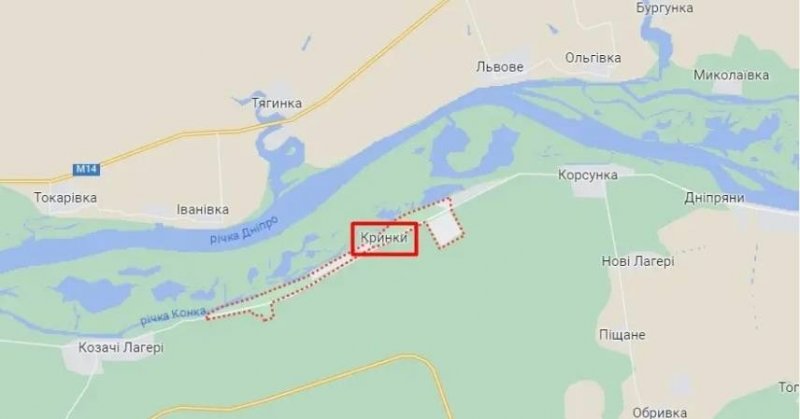 в Кринки аж до дороги Козачі Лагері-Кринки-Корсунка, перш ніж російські