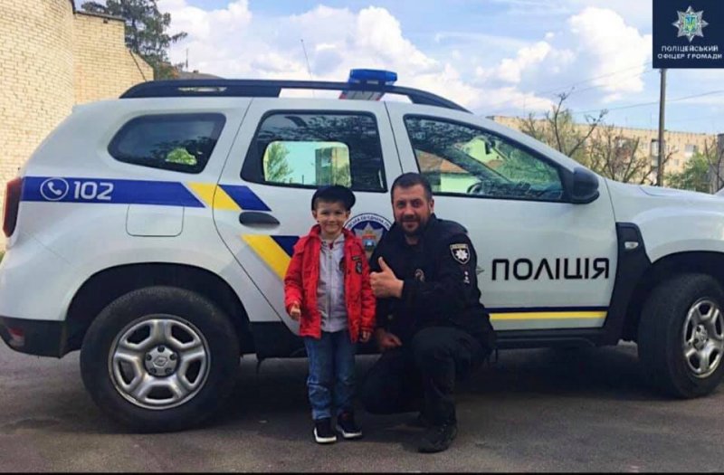 Офіцер громади потиснувши руку дитині, дозволив не лише проїхатись з ним в службовому автомобілі, а й потримати в руках рацію та жетон поліцейського, а також показав, що знаходиться постійно у його службовому авто.