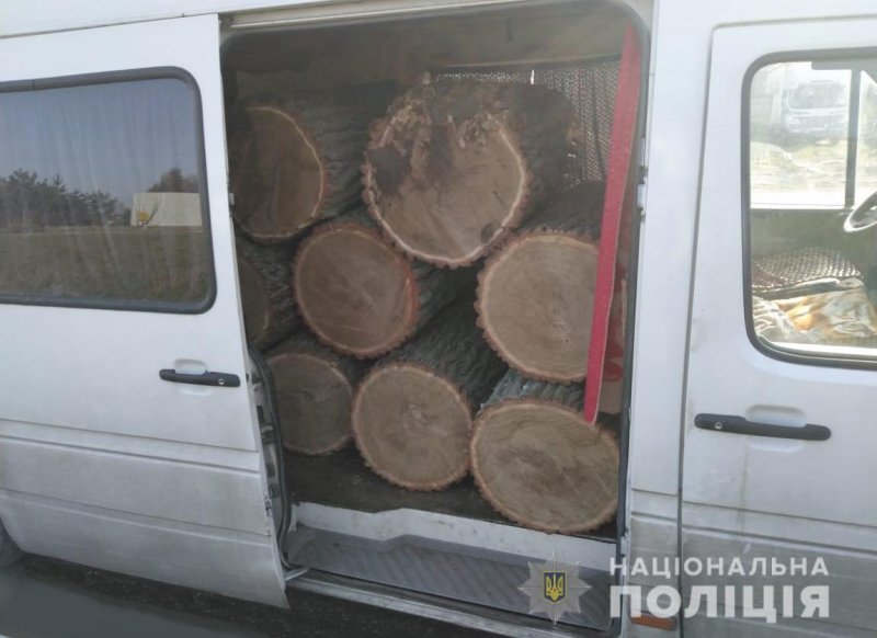 засобу у салоні вантажівки поліцейські виявили понад 10 колод дуба.